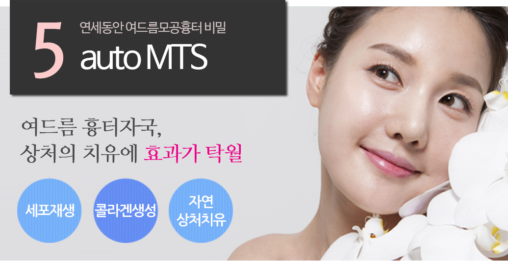 AUTO MTS´Â Automatic needle Therapy SystemÀÇ ¾àÀÚ·Î, Ç¥ÇǸ¦ Á¦°ÅÇϰųª ¼Õ»ó½ÃŰÁö ¾Ê°í micro needle·Î ¼ö¸¹Àº ¹Ì¼¼È¦À» ¸¸µé¾î, ¾à¹°ÀÌ Ä§ÅõÇÒ¼ö ÀÖ´Â Åë·Î¸¦ ¸¸µé°í, ¼¶À¯¾Æ¼¼Æ÷¿¡ ÀÚ±ØÀ» ÁÖ¾î, Äݶó°Õ »ý¼ºÀ» À¯µµÇÏ´Â ½Ã¼úÀÔ´Ï´Ù.